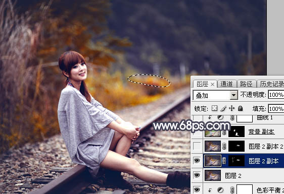 10、新建一个图层,盖印图层,混合模式改为“叠加”,按住Alt键添加图层蒙版,然后用柔边白色画笔把中间区域需要增亮的部分擦出来,如下图。
