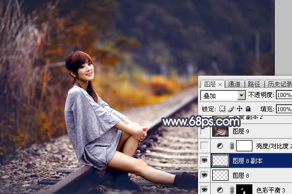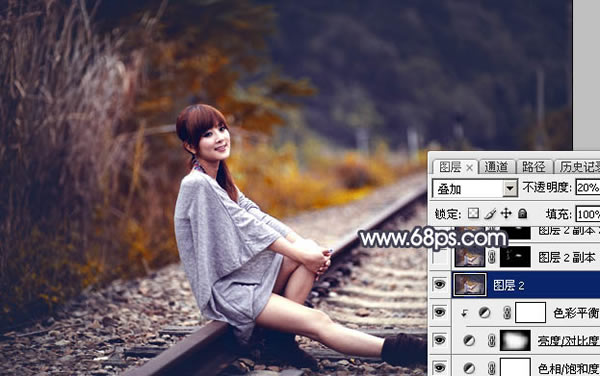 9、新建一个图层,按Ctrl + Alt + Shift + E 盖印图层,然后把混合模式改为“叠加”,不透明度改为:20%,效果如下图。这一步同样增加图片明暗对比。