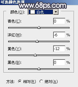 13、创建可选颜色调整图层,对红色,白色进行调整,参数设置如图26,27,确定后创建剪切蒙版,效果如图28。这一步把肤色部分的红色调暗一点,并加强高光颜色。