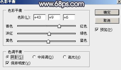 3、创建色彩平衡调整图层,对阴影,高光进行调整,参数及效果如下图。这一步给图片的暗部及高光区域增加橙红色,局部会有的失真,先不要去管。