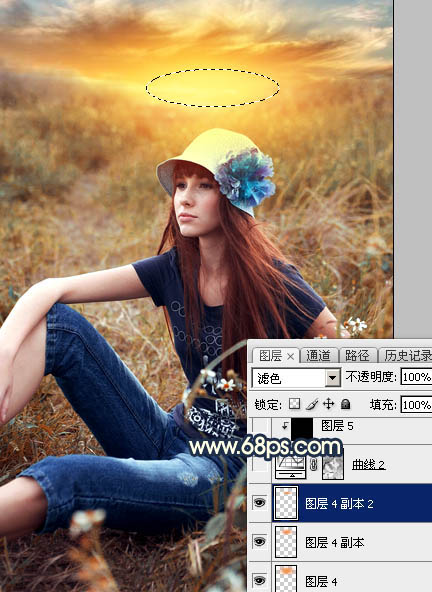 16、按Ctrl + J 把当前图层复制一层,混合模式改为“滤色”,按Ctrl + T 稍微缩小一点,效果如下图。