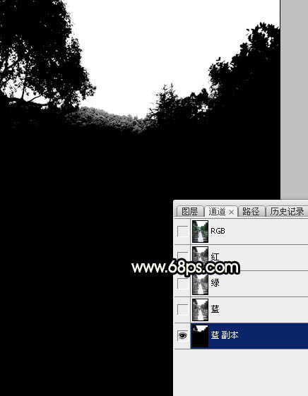 8、按住Ctrl + 鼠标左键点击蓝副本通道缩略图载入选区,点RGB通道返回图层面板;保持选区,选择菜单:选择 > 修改 > 扩展,数值为1;新建一个图层,用油漆桶工具填充白色。再把背景副本图层隐藏,效果如下图。
