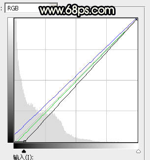 7、把背景图层复制一层,按Ctrl + Shift + ] 置顶,进入通道面板,把蓝色通道复制一层,得到蓝副本通道。按Ctrl + M 对蓝副本通道调整曲线,把暗部压暗,高光区域调亮,确定后用柔边黑色画笔把底部区域涂黑色,如下图。