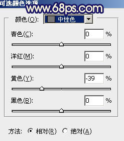 1、打开原图素材大图,创建可选颜色调整图层,对黄、绿、中性色进行调整,参数设置如图1 - 3,效果如图4。这一步给草地部分增加暖色。