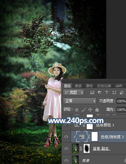 12、把背景图层复制一层,按Ctrl + Shift + ] 置顶,按住Alt键添加图层蒙版,用柔边白色画笔把人物部分涂出来。