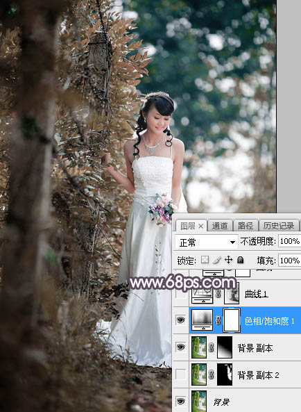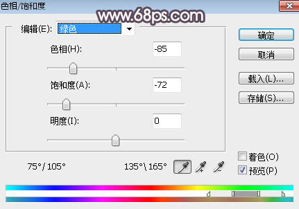 2、创建色相/饱和度调整图层,对黄色、绿色、青色进行调整,参数设置如图2 - 4,效果如图5。这一步把图片中的黄绿色快速转为中性红褐色,并降低青色饱和度。