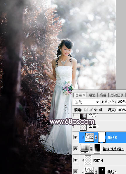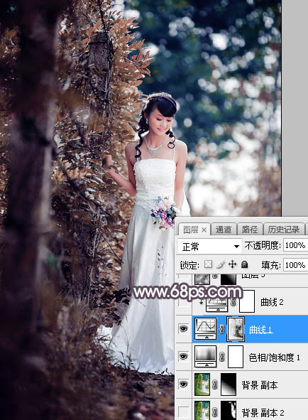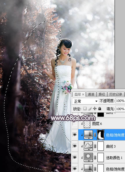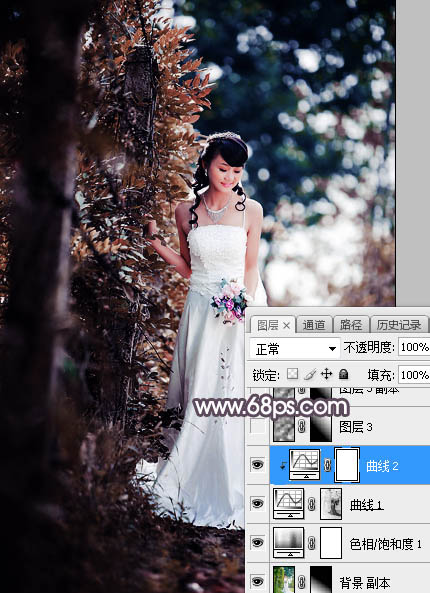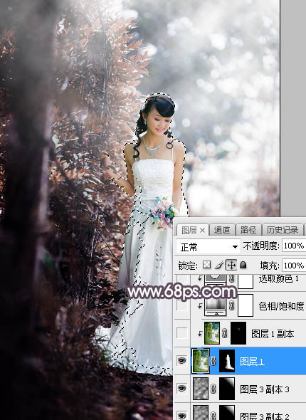 7、把背景图层复制一层,按Ctrl + Shift + ] 置顶,按住Alt键添加图层蒙版,用柔边白色画笔把人物部分擦出来,效果如下图。