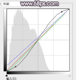4、创建曲线调整图层,对RGB通道进行调整,参数设置如图8,确定后按Ctrl + Alt + G 创建剪切蒙版,效果如图9。这一步同样增加暗部区域明暗对比。