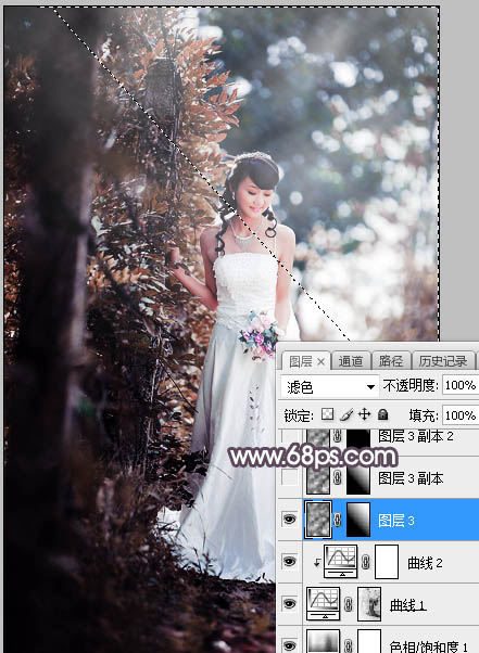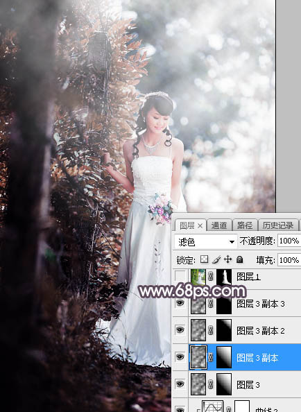 6、把当前图层复制几层,控制好高光区域的范围,效果如下图。