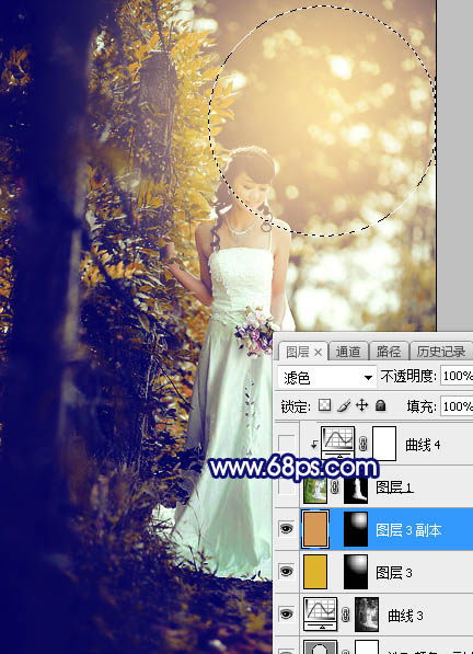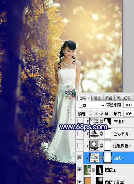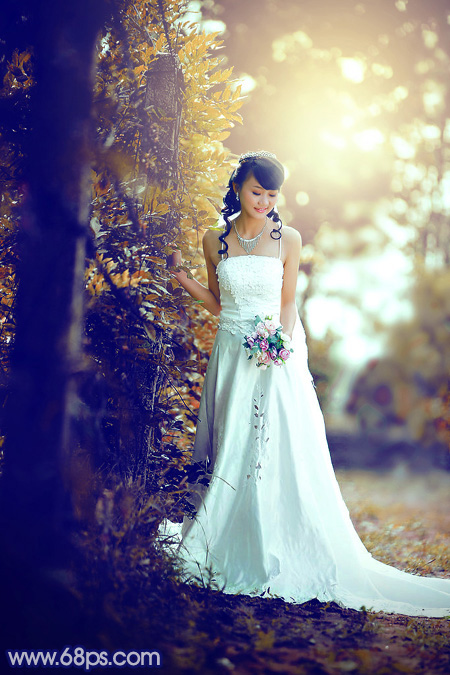 最后给图片局部增加一些高光,再把远处的背景模糊处理,完成最终效果。