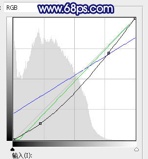 11、创建曲线调整图层,对RGB,蓝通道进行调整,参数设置如图19,确定后创建剪切蒙版,效果如图20。这一步增加人物部分明暗对比,并增加淡黄色。
