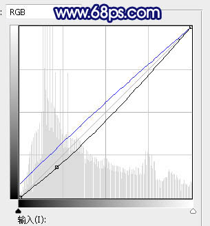 4、创建曲线调整图层,对RGB,蓝通道进行调整,参数设置如图8,确定后按Ctrl + Alt + G 创建剪切蒙版,效果如图9。这一步把图片暗部压暗,并增加蓝色。