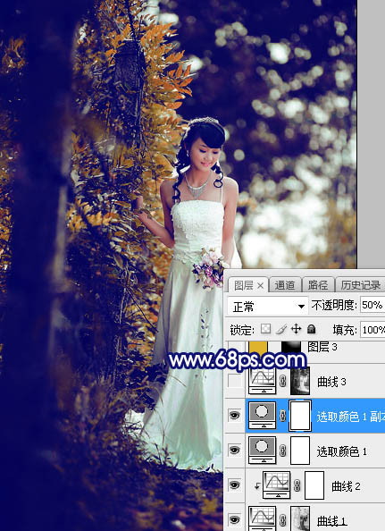 6、按Ctrl + J 把当前可选颜色调整图层复制一层,不透明度改为:50%,效果如下图。
