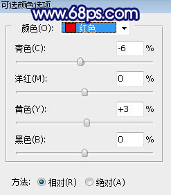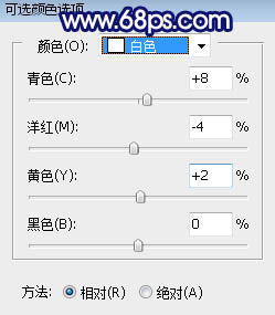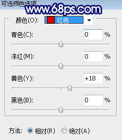16、创建可选颜色调整图层,对红、黄、白、黑进行调整,参数设置如图30 - 33,效果如图34。这一步微调图片中的暖色及高光暗部颜色。