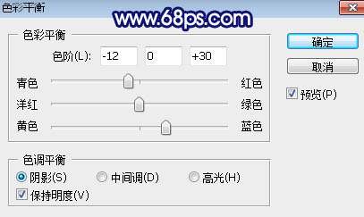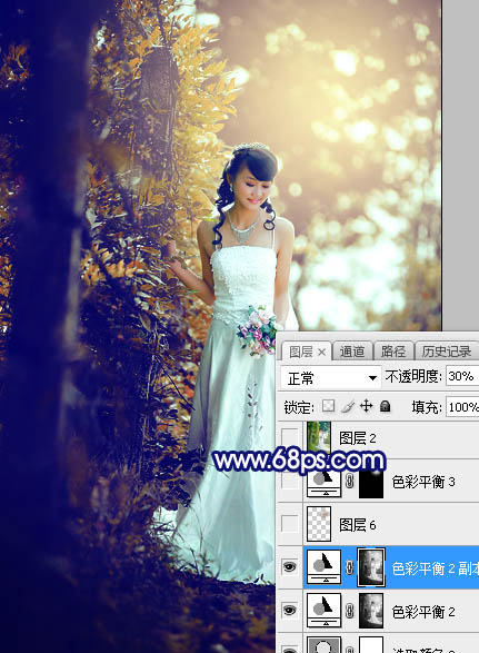 18、按Ctrl + J 把当前色彩平衡调整图层复制一层,不透明度改为:30%,效果如下图。