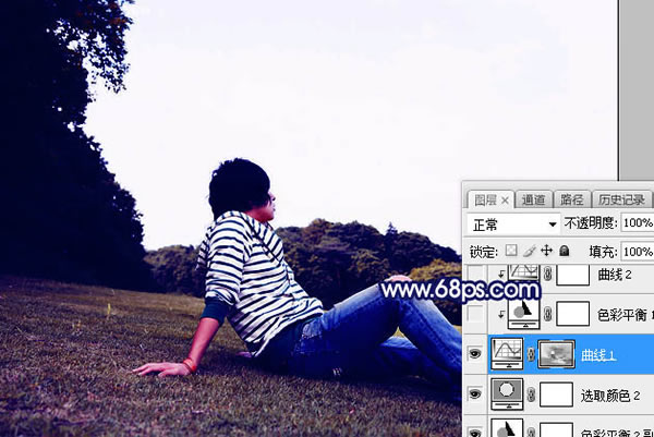 23、用曲线等把人物背光区域压暗一点,如下图。