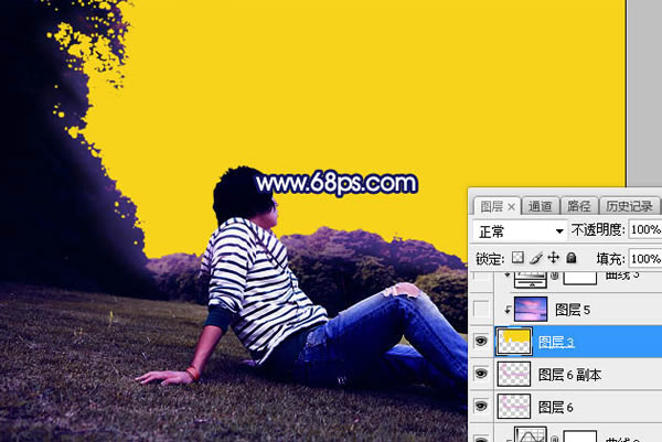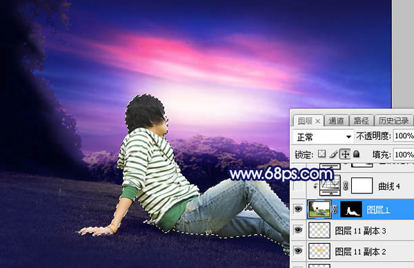 21、把背景图层复制一层,按Ctrl + Shift + ] 置顶,按住Alt键添加图层蒙版,用柔边白色画笔把人物部分擦出来,效果如下图。