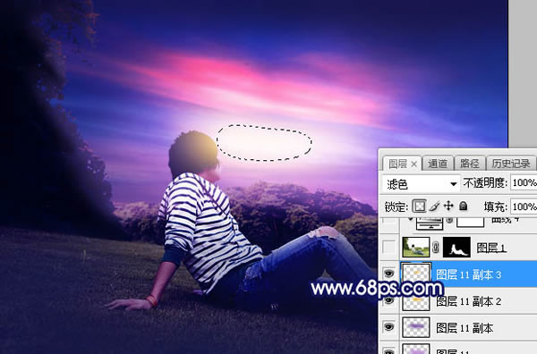 20、按Ctrl + J 把当前图层复制一层,按Ctrl + T 缩小一点,效果如下图。这几步给天空局部增加高光。