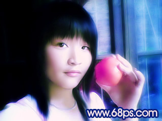 8、新建一个图层,盖印图层,适当的用Topaz滤镜锐化一下,然后把背景部分用模糊工具稍微涂模糊。