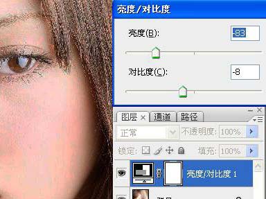 1、创建亮度/对比度调整图层,参数设置如下图。