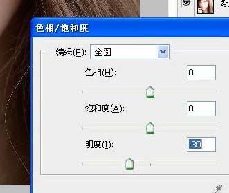 2、创建色相饱和度调整层,参数如图,然后盖印可见图层(ctrl+alt+shift+e),使用NEAT IMAGE磨皮注意嘴的细节部分。