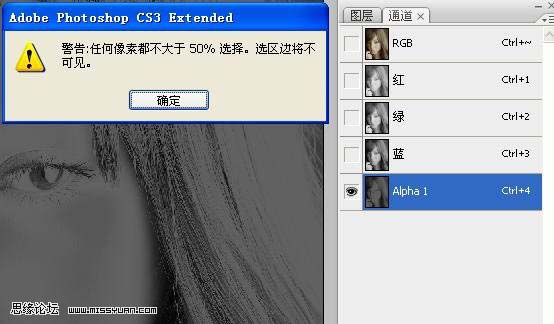 9、盖印可见图层。再次按住ctrl点击ALPHA通道出现警告图标。返回图层。锐化。参数如图。