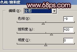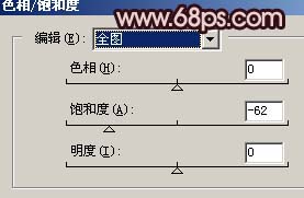 3、创建色相/饱和度调整图层,参数设置如图4,效果如图5。