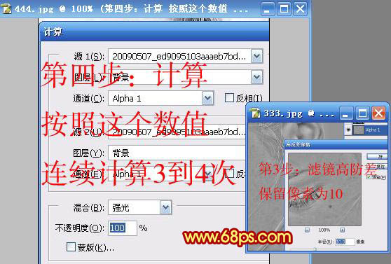4、执行:图像 > 计算,参数设置如下图,确定后再连续计算3到4次。