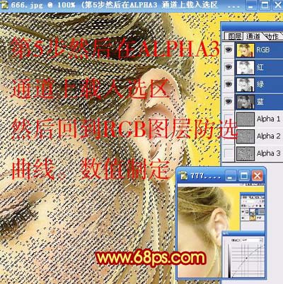 5、在Alpha3通道上载入选区,然后回到RGB图层,创建曲线调整图层,参数设置如下图。