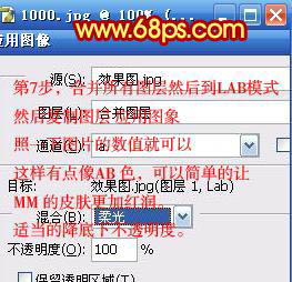 7、合并所有图层,然后选择菜单:图像 > 模式 > Lab模式,然后把背景图层复制一层,执行:图像 > 应用图像,参数设置如下图(通道:a,混合:柔光),确定后适当改变下图层不透明度。