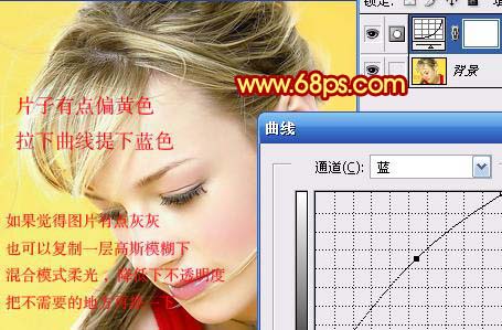8、片子有点偏黄色,创建曲线调整图层,适当改变下蓝色曲线,然后回到RGB模式,完成最终效果。