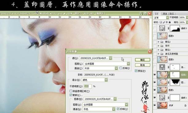 4、新建一个图层,盖印图层,执行:图像 > 应用图像,参数设置如下图。