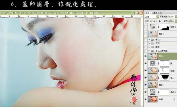 6、新建一个图层,盖印图层,适当的做锐化处理。