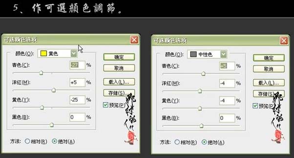 5、创建可选颜色调整图层,参数及效果如下图。