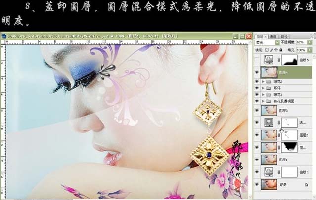8、新建一个图层,盖印图层,图层混合模式改为“柔光”,适当降低图层不透明度,效果如下图。