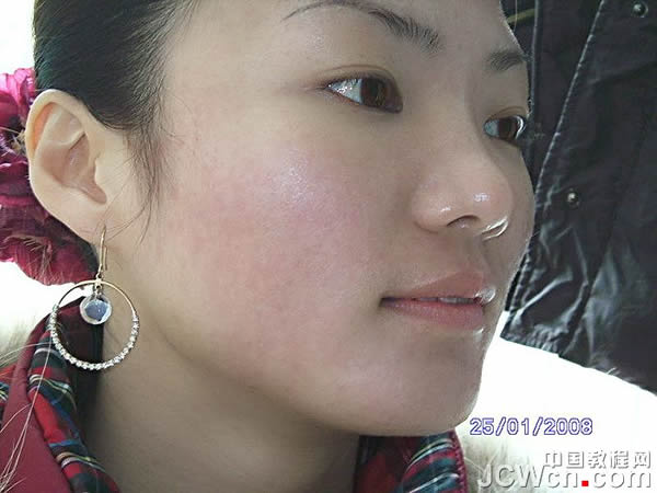 高低频法磨皮在国外已经开始流行。这个方法将图像的形状和颜色分解成了高频、低频两个图层,不仅可单独调整,而且互不干扰。低频层可以用来调节图像的颜色、去除色斑,这些调节不会影响到图片的细节;细节在高频层,这里的操作只改变细节,不改变颜色。使用得当,可以获得较满意的效果。此方法比较适宜处理难的图,一般的皮就不必劳它的大驾了,毕竟操作稍嫌麻烦。下面用曾数次发过的难图,做个调整示例: