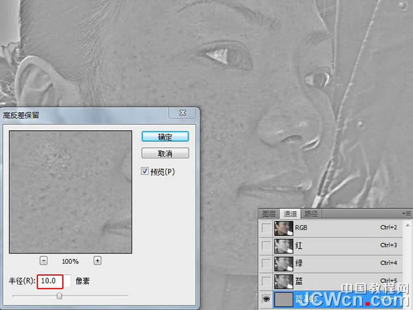 8、再来调高频层。复制蓝通道,高反差保畄,设置如图示。