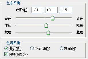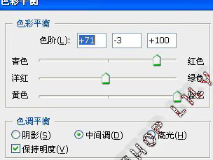 6、图层 > 新建调整图层 > 色彩平衡调整层。