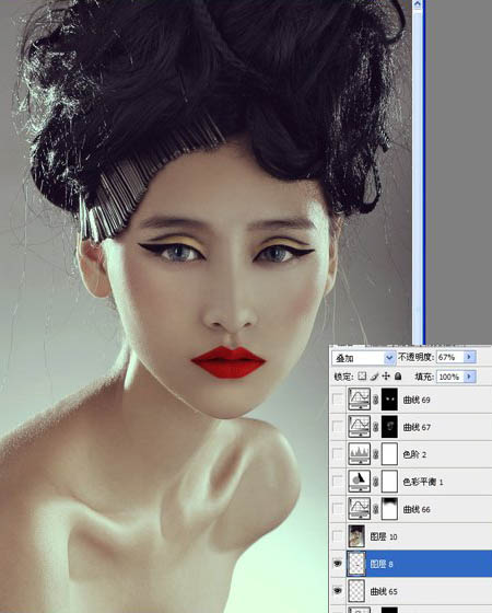 20、在整体的刻画一下高光,同04的方法。在把腮红加重一些,使妆面更佳突出一些。