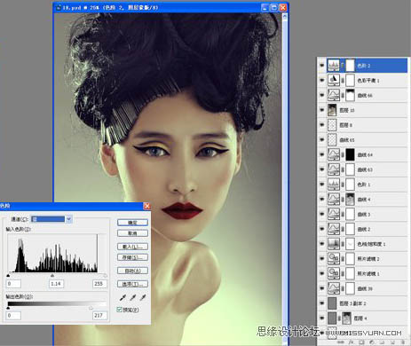 13、曲线调色,让头发偏蓝红,动用红色,绿色通道。