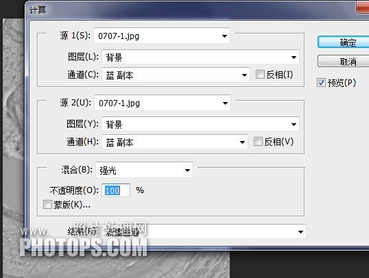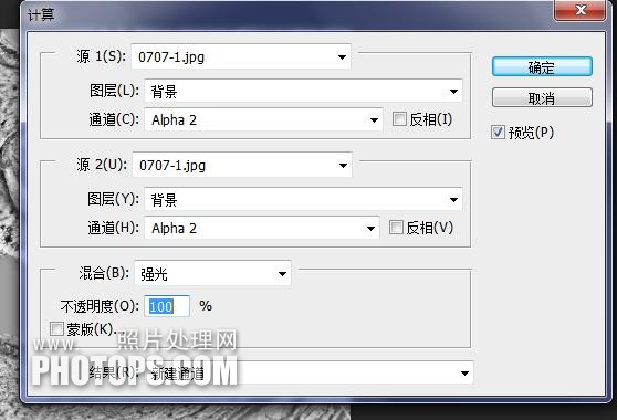 4、在菜单点:图像 > 计算,其参数如下, 会得到ALPHA 1。