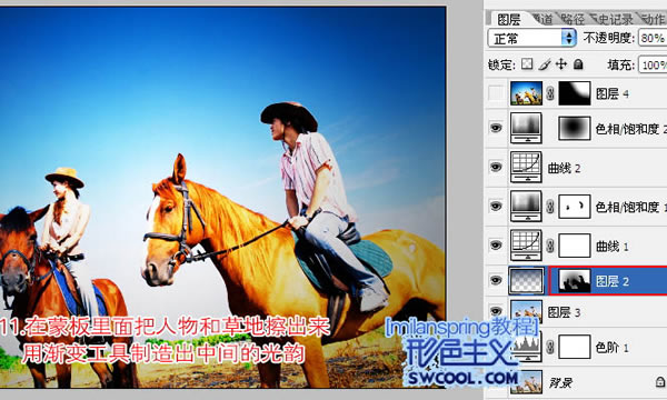 11、加上图层蒙版,用黑色画笔把人物,草地部分擦出来,效果如下图。