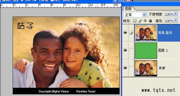 1、复制一背景层,下面再加一颜色图层以便观察,如图。
