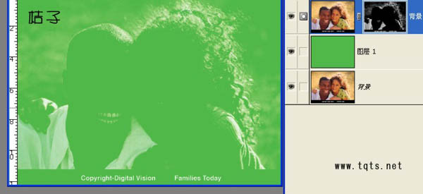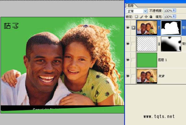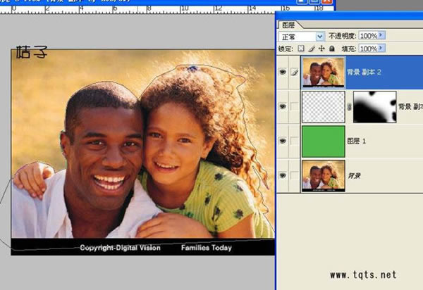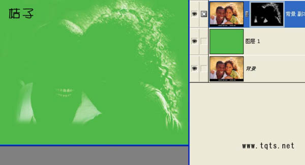 2、载入刚才调整过兰色通道的选区,并复制一个图层背景并添加蒙板。
