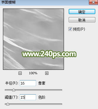 5、选择菜单:滤镜 > 模糊 > 表面模糊,参数及效果如下图。