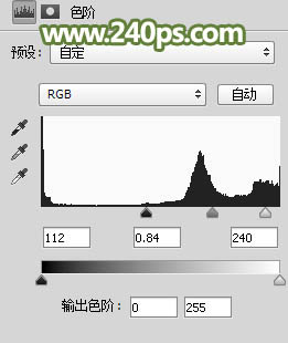 10、创建色阶调整图层,把暗部及中间调区域压暗,参数设置如下图。