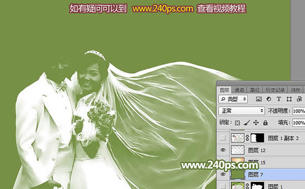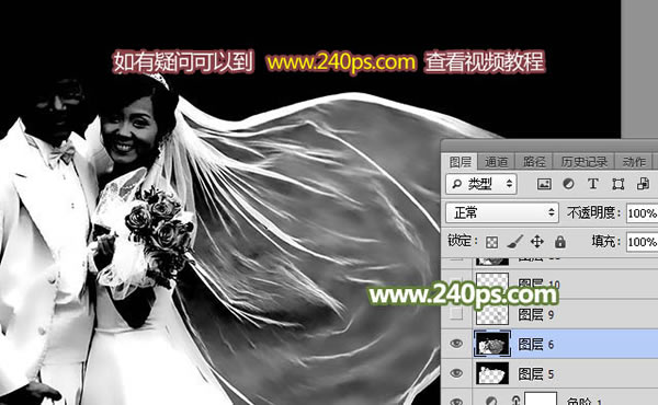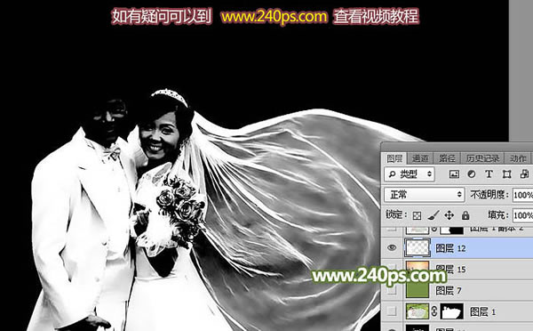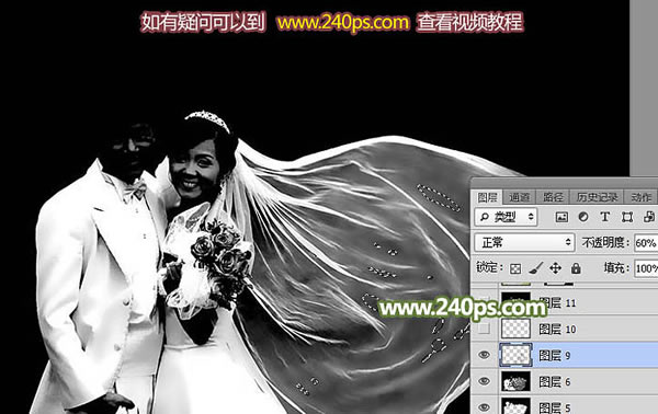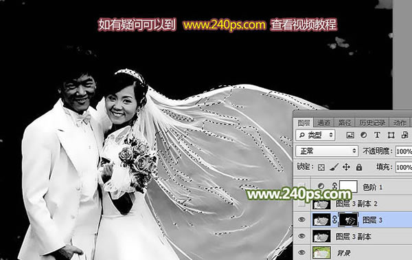 一般情况下这种透明婚纱直接用通道可以抠出,不过背景复杂一些的婚纱,最好是把相应的通道复制到图层中,运用滤镜,涂抹工具,画笔等可以更加细致的抠出。