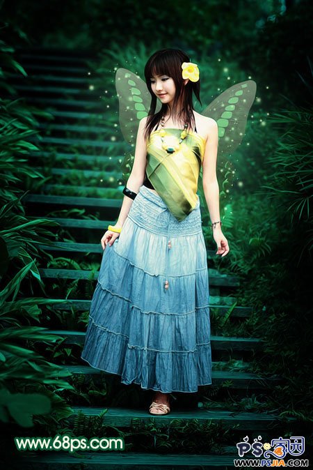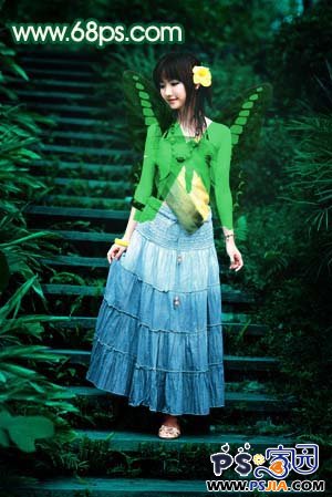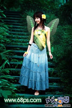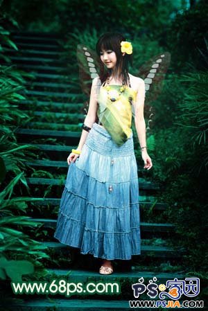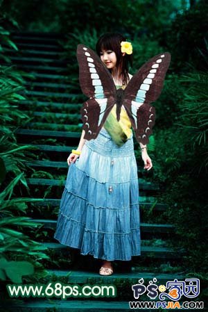 这篇photoshop教程简单介绍人物照片的调色及局部美化。原图素材已经相当不错了,为了不影响美观。教程只稍微调整下颜色。然后加上了透明的蝴蝶翅膀 。