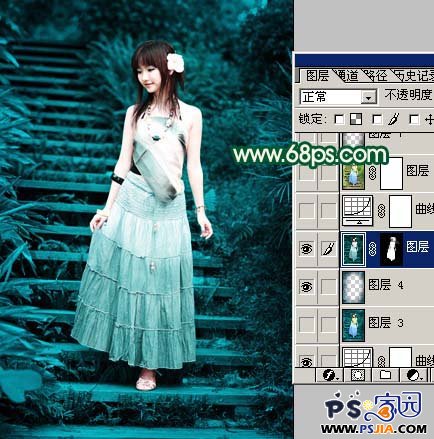 4、新建一个图层,盖印图层,点通道面板,选择绿色通道,按Ctrl + A全选,按Ctrl + C复制,点蓝色通道,按Ctrl + V粘贴,回到图层面板,加上蒙版,只保留人物部分,其它部分用黑色画笔擦掉,效果如图7。