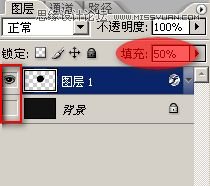 2、下面我们要制作我们所需的笔刷,隐藏背景图层,用椭圆工具按住SHIFT键画一个黑色的圆形,填充为50%